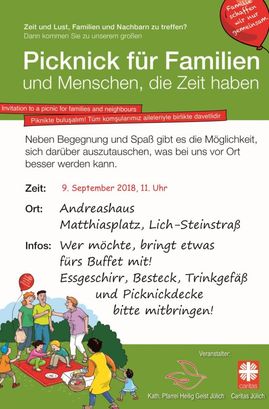 Weitere Informationen zum Familienpicknick und Kontakt über: p.graff@heilig-geist-juelich.de, skarger@cv-dueren.de