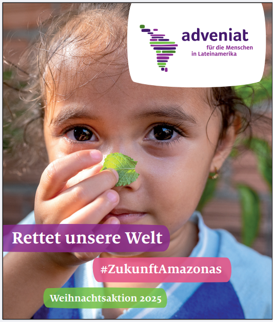 Unter dem Leitwort „Rettet unsere Welt – Zukunft Amazonas“ ruft Adveniat dazu auf, sich an die Seite der Menschen zu stellen, die für die Bewahrung des Amazonas als gemeinsames Haus und als globale Grundlage für zukünftige Generationen einstehen – oft unter Einsatz des eigenen Lebens.