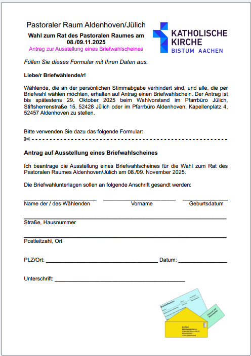Briefwahlantrag Rat des Pastoralen Raums Aldenhoven/Jülich 2025