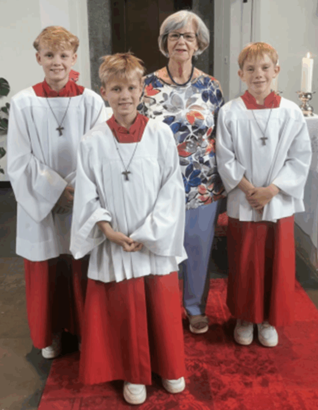 Im Gottesdienst am 23. August durfte die Gemeinde in Broich etwas Besonderes miterleben: Simon Klein wurde von Wortgottesfeierleiterin Frau Roswitha Pelzer feier- lich in seinen Dienst als neuer Messdiener eingeführt.